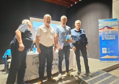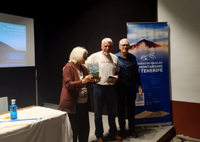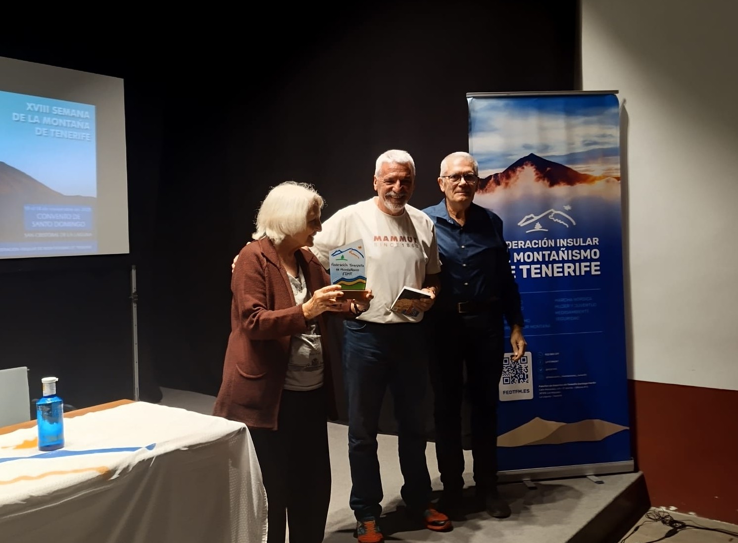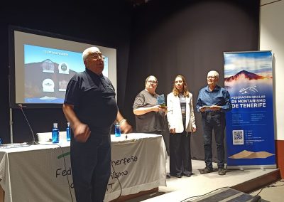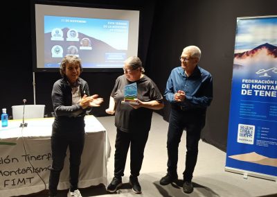 Julio Delgado, presidente del Grupo Montañero de Granadilla, presentó la pasada SEMANA DE LA MONTAÑA de ese municipio, que con gran éxito se celebró en el pasado mes de Marzo, así como la reunión de escaladores en Las Vegas. Al finalizar y a modo de homenaje se entregó un recuerdo a Antonio Rivero ex presidente del club, que tanto contribuyó al desarrollo de nuestro deporte en esa zona de la Isla.