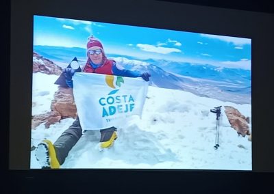 Con un audiovisual fue presentada la Alpinista y Aventurera María del Pino Plasencia, del Grupo Montañero Abinque de Adeje, quien tras un recorrido por su extenso historial, nos presentó la subida al volcán Ojos del Salado en Argentina.