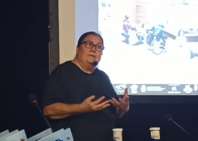 Comenzó la jornada con la participación de Montaña para Todos, con un grupo de imágenes del pasado Campamento de Montaña Inclusiva y Adaptada. Meme, alma mater de esta actividad y vocal de la FIMT, fue narrando la diferentes actividades desarrolladas en el Campamento de las Raíces.