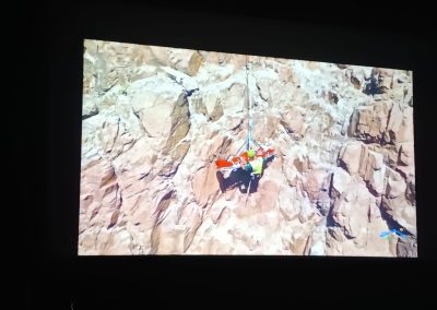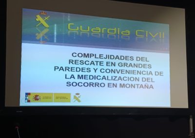 A pesar de las inclemencias del tiempo, la Semana de la Montaña sigue su curso. Ayer jueves, ante un numeroso público, comenzó la jornada con un audiovisual presentado por nuestro vocal de escalada Kike Fox, mostrando un simulacro de rescate, con el GREIM de la Guardia Civil, en La Catedral de Las Cañadas del Teide, El propio GREIM presentó a continuación maniobras de rescate y técnicas para evacuación de heridos.